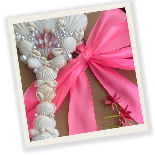 | Materials | Mirror, artificial gems, fabric, lace, hot glue, seashells |